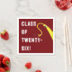 Kreativa examensfestservetter med klassisk vinröd och gul tofs-kap för seniorklass '26 studenter. För att anpassa, redigera texten för att lägga till namn eller på annat sätt anpassa.