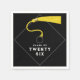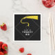 Kreativa examensfirande servetter för studenter som tar examen 26 med rolig text och klassisk svart examenshatt med guldlugg på svart bakgrund.