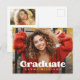 Tackkort för examen med ditt foto och texten "examen" i en retro font med ditt namn nedan. Ytterligare foto och anpassad tackmeddelande på baksidan.