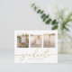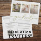 Denna design har en enkel två-fotografiers examensinbjudanmall, med QR-kod och Facebook-URL för webbplats och evenemangssida online. en elegant layout för tre 3 bilder examensavisering, med modern enkel kalligrafi, trendig script-typografi, bra för vertikal high school eller college, en inbjudan till examensfest, en minimalistisk design för seniorstuderande, fantastisk gratulation till firande, med guldfärg text och vit bakgrund, och ett elegant script-teckensnitt.