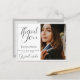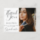 En modern, chic foto Examen tack-kort. Framsidan kan vara valfritt examenfoto med det trendiga skriptet TACK, Klass av Info och Examen Namn. Baksidan ger en textmall för generiskt meddelande och utrymme för mer. Ändra bakgrundsfärgen för skoltema eller för att komplettera ditt examenfoto.