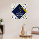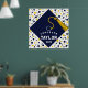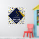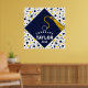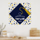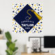 Kreativ examensfestaffisch med en marinblå examensmössa med gul tofs på en konfettibakgrund. För att anpassa, redigera text lägg till hans eller hennes namn och avgångsklassens år.