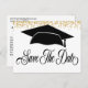 Skicka ut detta eleganta och klassiska svarta och vita examens vykort till din familj och vänner. Inkluderar falskt guld glitter utseende. Examen Spara Datum vykort modern och enkel design med en examensmössa. Elegant textstil typsnitt.