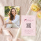 Dela din examen nästa kapitel med detta moderna högskolefondskort med en ren layout, mjuka rosa accenter och ett personligt foto. Det enkla, hjärtliga meddelandet och skannbara QR-koden gör det enkelt för gästerna att visa sitt stöd på ett genomtänkt och bekvämt sätt. Anpassa namnet och detaljerna för att skapa ett varmt, polerat tillägg till din examensfirande.