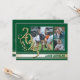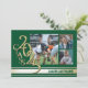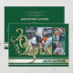 Avgångsklass 2025 Guld varsity stripe trippel foto examensannonsering i grönt och guld.