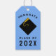 Examen presentkort med texten class of '25 grad congrats och klassiskt mönster med svart mössa och gul tofs. Redigera texten för att lägga till studentens avgångsår eller namn.