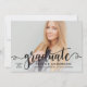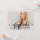 Låt din seniors porträtt lysa med denna moderna inbjudan till examensfest som har en svepande svart kalligrafi "examen"-manus över en fullbleed-fotografi. Den mjuka rosa baksidan kombinerar kalligrafi och serif-typografi för att hålla alla dina festdetaljer vackert organiserade. Fullständigt anpassningsbar text på båda sidor gör det enkelt att anpassa.