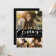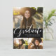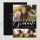 Med tre foton och ett modernt manus skrivet "graduate" i vitt på svart bakgrund är detta kort det perfekta sättet att meddela din examen till vänner och familj. Denna examensannonseringsdesign är djärv och modern men fortfarande sofistikerad. Den anpassningsbara texten på framsidan har plats för namn, skola och år. Baksidan är en matchande svart med en vit stjärnig fläck och har plats för text till inbjudan till examensfest eller så kan den lämnas tom. Hitta fler stilar och färger av denna examensdesign exklusivt i kollektionen av Lea Delaveris Design. Det finns också tillgängligt som en digital examensinbjudan nedladdning!
