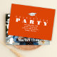 Denna design har en modern ljus orange examensavslutad examen, med en enkel minimalistisk bild, för gymnasie- eller högskolestudenter som ska ta examen, en modern mössa med tofs, med en examensklass från 2023, med en kreativ och trendig typsnittsstil, för inbjudningar till examensfest, en fantasifull och rolig anpassad fotobjudan, en mall för bild med full bleed, moderna inbjudningar till examensfest.