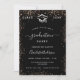 En modern, elegant inbjudan till examensfest. En svart bakgrund dekorerad med falska roséguldfärgade gnistor. Anpassa och lägg till ett namn, år och detaljer.
