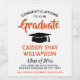 Lägg till en personlig touch till festdekorationerna på college eller gymnasiet examen med dessa eleganta orange, vita och svarta etiketter för vinflaskor. Designen har en vit bakgrund, svart studentmössa, modern typografi, handskriven stilkalligrafi och ett anpassningsbart meddelande som lyder "Grattis till vår examen". Texten längst ner innehåller examensår, skolnamn och valfria rader för examen, dryckestyp eller annan information. All text är enkel att anpassa. Dessa etiketter är en snygg idé för festdrycker och ett elegant tillägg till examen celebrationen. Skål!