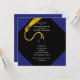 Unik inbjudanmall för examen med klassisk svart och guld mössa på en royalblå bakgrund.