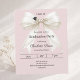 Fira din prestation med denna eleganta inbjudan till examen med elfenbensvit rosett. Designen har en stor, sofistikerad satinband dekorerad med ömtåliga pärlsträngar och en subtil ikon för examenshatt. Dammigt, rosafärgat bakgrund. Det är det perfekta valet för gymnasie- eller universitetsstudenter som söker en feminin och chic underrättelse.
