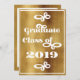Jag har skapat en inbjudan till fest med retrotypografi-stil. Guld och vitt med fetstilstext i affischstil för examenklass 2019. Falska guld- och vitfärger. Perfekt för en examensfest eller något evenemang för examenklassen. Grattis till alla nyutexaminerade! Framåt klass 2019!