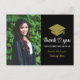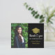 En svart, vit och guld anpassad fotograttisdesign för att tacka alla som skickade sina gratulationer och firade examen för den som tog examen från gymnasiet eller universitetet. Den eleganta examensdesignen är bra för att tacka de som skickade gratulationer och deltog i examensfesten. Ersätt bilden med en vertikal bild av examen. Den kalligrafiska texten kan anpassas och personifieras med namnet och klassen för examen. Du kan ändra typsnittets färg, storlek och typ. Du kan också ändra färgen på "tack"-hjärtat och examensmössan med hjälp av Designverktyget. Denna speciella tacksamhetsdesign är din att anpassa och personifiera som du önskar. Designen kan överföras till andra produkter.