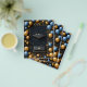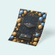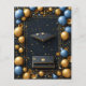 En lyxig display med svarta föremål omgivna av festliga gyllene och blå ballonger med konfetti. Perfekt för firanden, evenemang eller för att visa sofistikering.