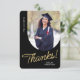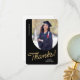 Detta platta examensbevis tack-kort har ett vertikalt foto med en välvd kant. Anpassa detta svarta och gyllene kort med ditt eget meddelande eller använd det som visas.