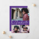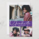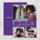 Lägg till dina 3 favoritfoton på framsidan av dessa examenshälsningar som har avgångsklass och GRADUATE i chic skrivstil på lila bakgrund (färgen kan ändras med hjälp av länken Anpassa ytterligare och våra designverktyg) med dina detaljer på baksidan. Fler designs i vår butik.
