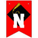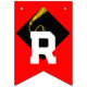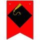Unika examensfirande girlangflaggor dekoration med klassisk svart och guld examensmössa på en röd bakgrund.