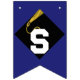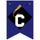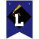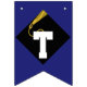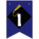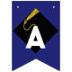 Unik examensfirande dekoration med svart och guld examensmössa mönster på blå bakgrund.