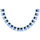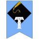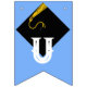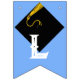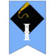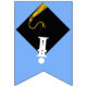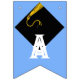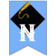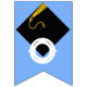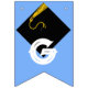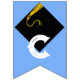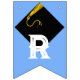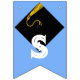 Examensfirande festliga flaggor dekoration med klassisk svart och guld examensmössa på en ljusblå bakgrund.