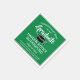 Lägg till en elegant personlig touch till examensfestdekorationer för högskola eller gymnasium med dessa anpassade gröna, vita och svarta pappersservetter. All text är enkel att anpassa. Designen har en grön bakgrund, svart studentmössa, stilren modern typografi och handskriven kalligrafi. Grattis till examen!