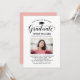Inbjudan till examenfest med modernt typsnitt ”Examinerad”, en ikon för studentmössa och en ren fotoutformning. Tidlös svart typografi håller det modernt och lätt att läsa. Roséguld bakkort visas för en varm och förhöjd accent. Lägg till examenstudentens namn och festsdetaljer.