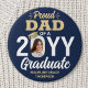 Visa din glädje för den nyutexaminerade med en snygg specialdesignad foto-"Stolpappa"-knapp med rund form för studenten. Bilden och texten i denna mall är enkla att anpassa, och all text, färger och typsnitt kan ändras med Zazzle:s designverktyg. (TIP: Ett enkelt sätt att placera en bild exakt som du vill är att beskära den innan du laddar upp den till Zazzle:s webbplats.) Designen i marinblått, vitt och guld omfattar den nyutexaminerades foto, namn och avgångsår. Den har också elegant modern typografi och stilfullt kalligrafiskt skrivstil. Observera att guld är tryckt färg, inte metallfolie. Denna accessoar ger en unik touch till en studentavslutning eller studentfest-outfit. Grattis till den nyutexaminerade!