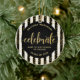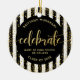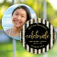 Denna personliga fotoornament är en underbar souvenir för din favoritstudent eller hennes familjemedlemmar. Framsidan har en fantastisk, modern, glittrande falsk guldglitter handskriven kalligrafi på en svart-vitrandig bakgrund med falska guldglitterkonfettipunkter. Anpassa den anpassade texten med din students namn, gymnasieskola och avgångsår. Hennes anpassade foto finns på baksidan. Val av material: keramik, metall, glas eller premium metallram och en cirkel eller fyrkantig form. Matchande inbjudningar, tackkort, möss-topp, servetter, tallrikar och andra examenspresenter finns också i denna trendiga och stilrena kollektion. Garanti för att bevara kära minnen från hennes speciella tillfälle!