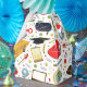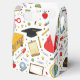 Kreativ designmall för examenspresentbox med examensmössa och färgglatt skoltema.