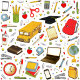 Kreativ design för examensbevis för gymnasiet med skolrelaterat mönster och en svart och guld examensmössa.