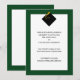 Klassiska examenstryck för avgångselever med elegant svart hatt och gul tofs på grön bakgrund.