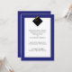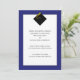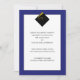 Klassiska examenstryck för avgångselever med elegant svart hatt och gul tofs på blå bakgrund.