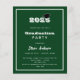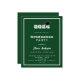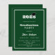 En modern och stilren inbjudan till examensfirande. Lämplig för både han och hon. Grön bakgrund, vit text och en ram. En svart examenshatt.