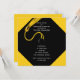 Unik inbjudanmall för examen med klassisk svart och guld mössa på gul bakgrund.