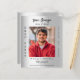 Anpassa och lägg till ett foto, namn, skolans namn, avgångsklass och festdetaljer. En falsk silverfärgad bakgrund, svart text.