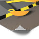 Design har en liten bilarbetare i en afrikansk pojke i en säkerhetshatt och en smart väst för orange som kör en orange, gult och grått-grävare på en byggarbetsplats! Det finns en gult och svart lutande rand för bakgrunden som vanligtvis finns i byggzoner och på byggplatser! Perfekt till ett rum eller en dagis.