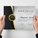 Hedra prestation i stil med denna eleganta svarta och guld Certifikat för Excellence-mall, genomtänkt utformad för att leverera en djärv, modern och distinkt presentation. Med flödande svarta och guld vågdetaljer längs ena sidan, en raffinerad neutral bakgrund, graciös scripttypografi som framhäver mottagarens namn och ett klassiskt guldpris sigill, förmedlar detta certifikat omedelbart prestige och prestation. Den balanserade layouten håller mottagarens namn som fokus medan den erbjuder tydligt definierade avsnitt för prisdetaljer, datum och signatur. Dess snygga och professionella design gör den idealisk för företagsutmärkelser, medarbetarpriser, akademisk excellens, ledarskapsutmärkelser, avslutade utbildningar, kyrkliga erkännanden, volontäruppskattning