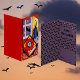 Mini-helgdagskort: från läraren till student eller student till student som vid en Halloween-kortväxling. Inga kuvert kom med dessa kort. Bäst att inte svara på slottsdörren! I rummet med ett tänt ljus är en skalle bok och utanför fönstret fladdermus och stjärnor. Inuti kortet finns en fladdermus mönster.