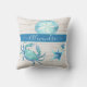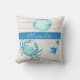 Vitt trä, Nautical Teal Blue Crab, Starfish och Sand dollars Watercolor Pillows med Monogram Namn. Blå och Vita Anpassad design, Brighten upp vilket rum som helst, Perfekt för barn.