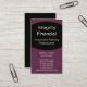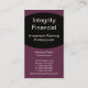Professionell Executive Kurvor affärskort design i äggplanta. Det här eleganta och rena profilkortet är ett underbart val för någon som vill skapar ett underbart första intryck. Ett val av perfekt för professioneller inom finanssektorn, t.ex. investeringsplanerare, anaylster, låneansvariga eller försäkringsbolag i agent. Om du vill göra den här designen till din egen ska du lägga till din person-/affärsinformation i fält som tillhandahålls. Typsnitt och färg kan ändras genom att klicka på knappen "Anpassa det!".