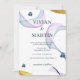 Exempel på klassisk gyllene lila grönt bröllop inbjudningar