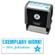 Den här inspirerande designen av gummi frimärke innehåller det positiva budskapet "EXEMPLÄRT ARBETE!" och en anpassningsbar namn. Den har också en dekorativ stjärnikon. Det skulle kunna användas av en lärare eller lärare när de markerar uppdrag, för att erkänna att ett student har gjort bra ifrån sig.