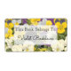 Anpassade exlibris-etiketter med texten 'Denna bok tillhör:' med blockbokstäver och skrivstil för ditt namn på vackra blommande lila, gula och blå violer och penséer från en vintage botanisk målning på en lila bakgrund. Anpassa den för att ändra typsnitt, storlek, bakgrundsfärger och skapa din egen anpassade design, spara till och med din design för senare.