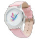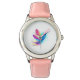 Ljusstark, iriserande, exotisk flygande hummingbird på vit bakgrund, målad med multifärgad, vattenfärg. Regnbågsmusfågel.