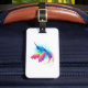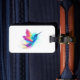 Ljusstark, iriserande, exotisk flygande hummingbird på vit bakgrund, målad med multifärgad, vattenfärg. Regnbågsmusfågel.