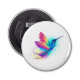 Ljusstark, iriserande, exotisk flygande hummingbird på vit bakgrund, målad med multifärgad, vattenfärg. Regnbågsmusfågel.