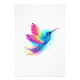 Ljusstark, iriserande, exotisk flygande hummingbird på vit bakgrund, målad med multifärgad, vattenfärg. Regnbågsmusfågel.