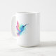 Ljusstark, iriserande, exotisk flygande hummingbird på vit bakgrund, målad med multifärgad, vattenfärg. Regnbågsmusfågel.
