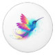 Ljusstark, iriserande, exotisk flygande hummingbird på vit bakgrund, målad med multifärgad, vattenfärg. Regnbågsmusfågel.